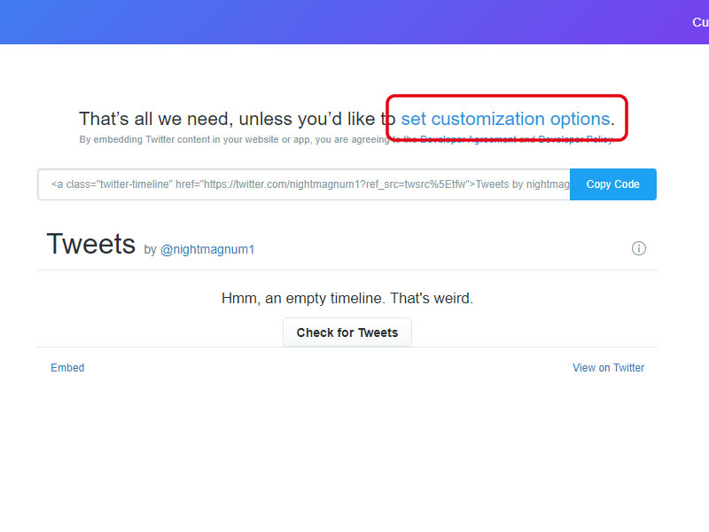 "Copy Code" 버튼을 눌러 임베드 코드를 복사합니다.